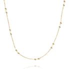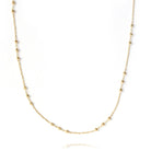 Delicate and striking. The station chain with its interval golden spheres creates an attractive pattern around the neck that is beautiful when worn alone, great for layering and perfect for adding charms.