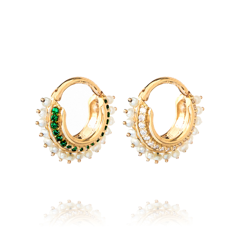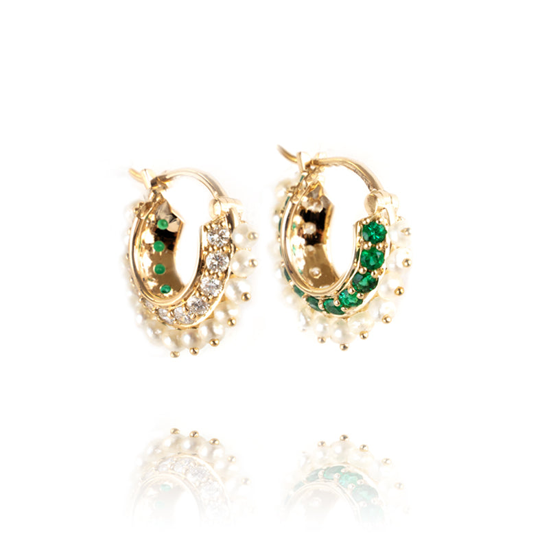 Pearl Array Diamond and Emeralds Huggies